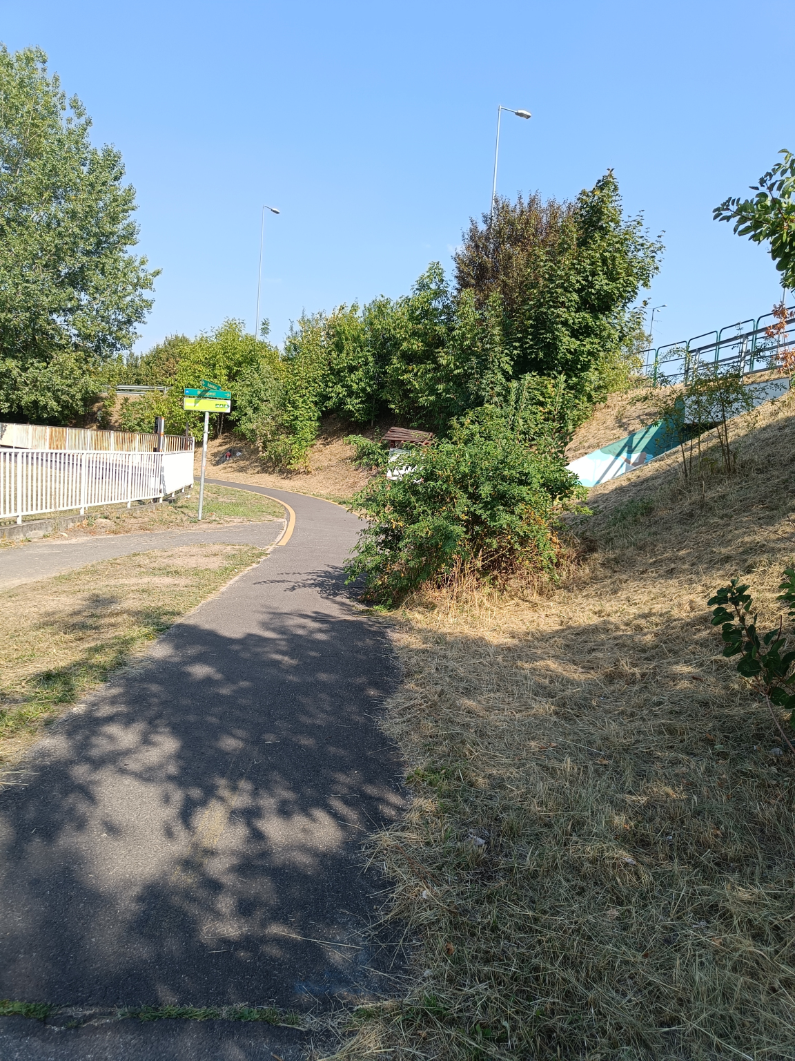 Elburjánzottak kicsit a bokrok a József Attila utca alatt átvezető biciklis alagútnál. A legfőbb gond azzal a bokoral van, ami az alagúton át dél felől érkezők elől kitakarja a balról lefelé guruló bicikliseket. Ez balesetveszélyes.