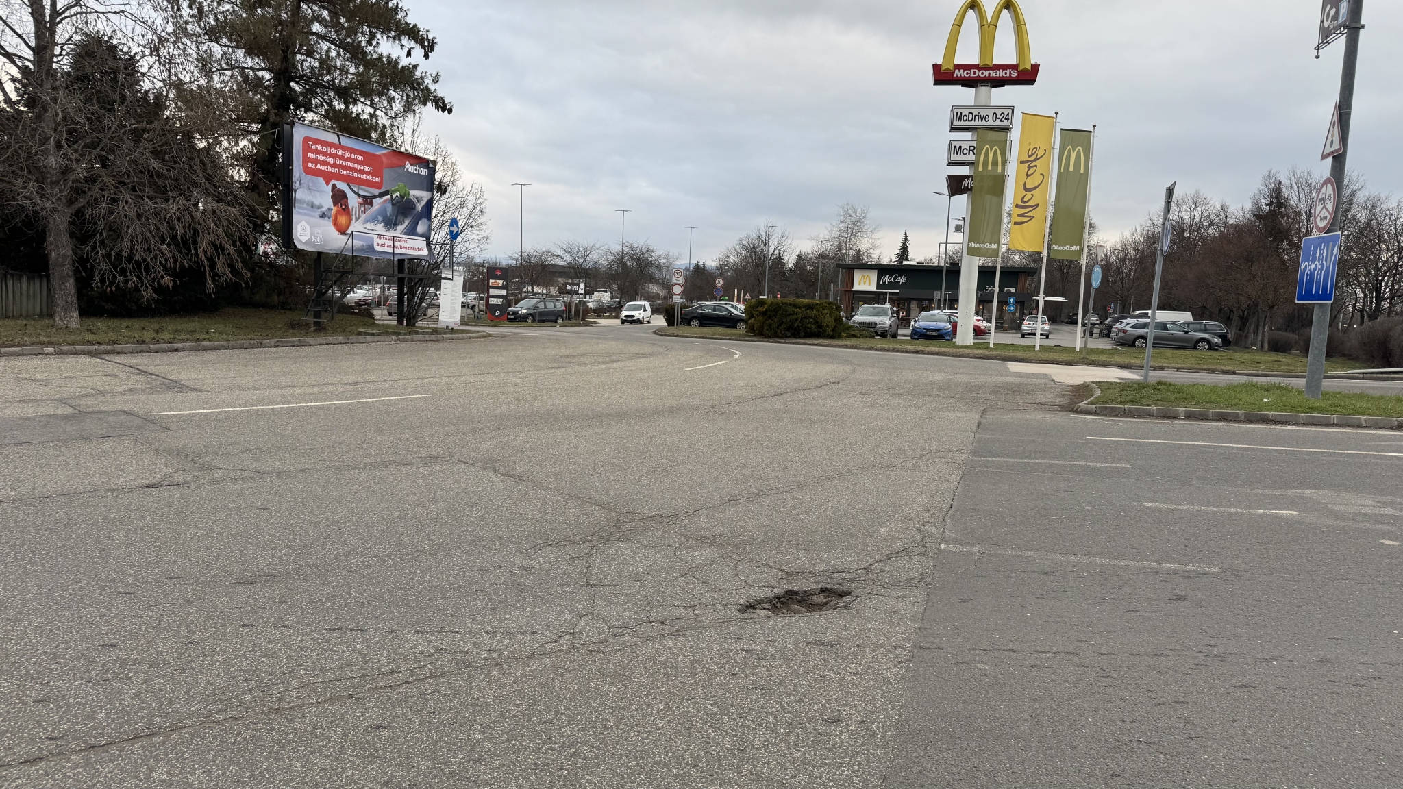 Hatalmas kátyúk a körforgalomnál