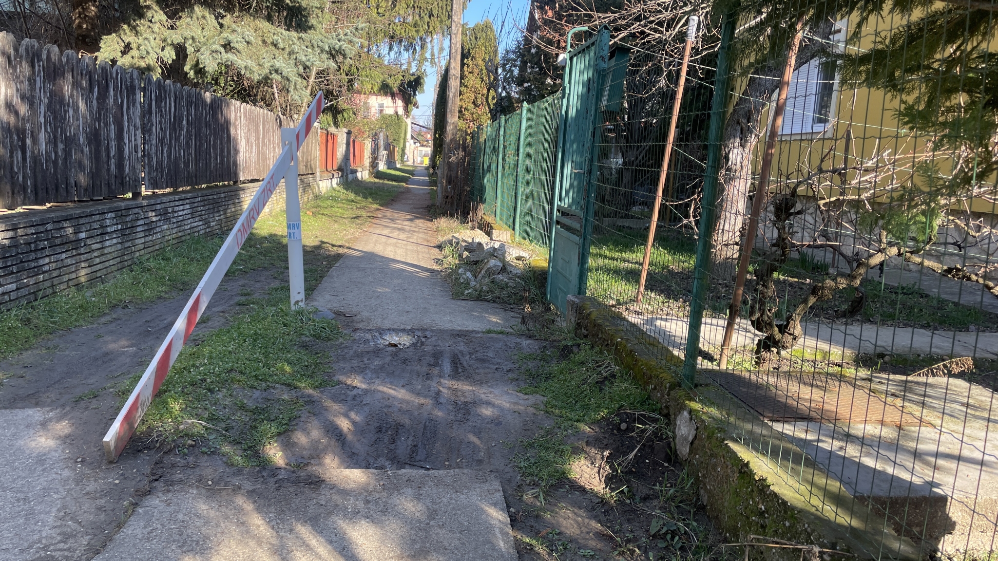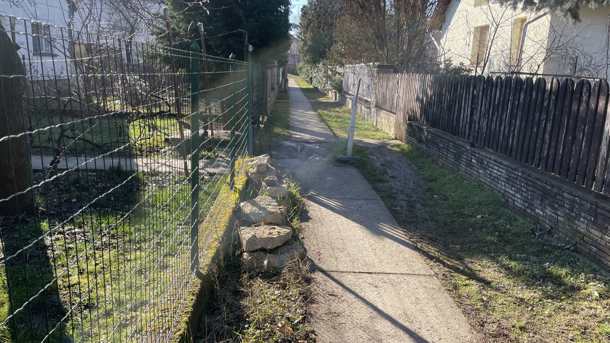 Nyár elején a DMRV csőtörés miatt felbontotta a beton járdát. Azóta a helyreállítás nem történt meg.