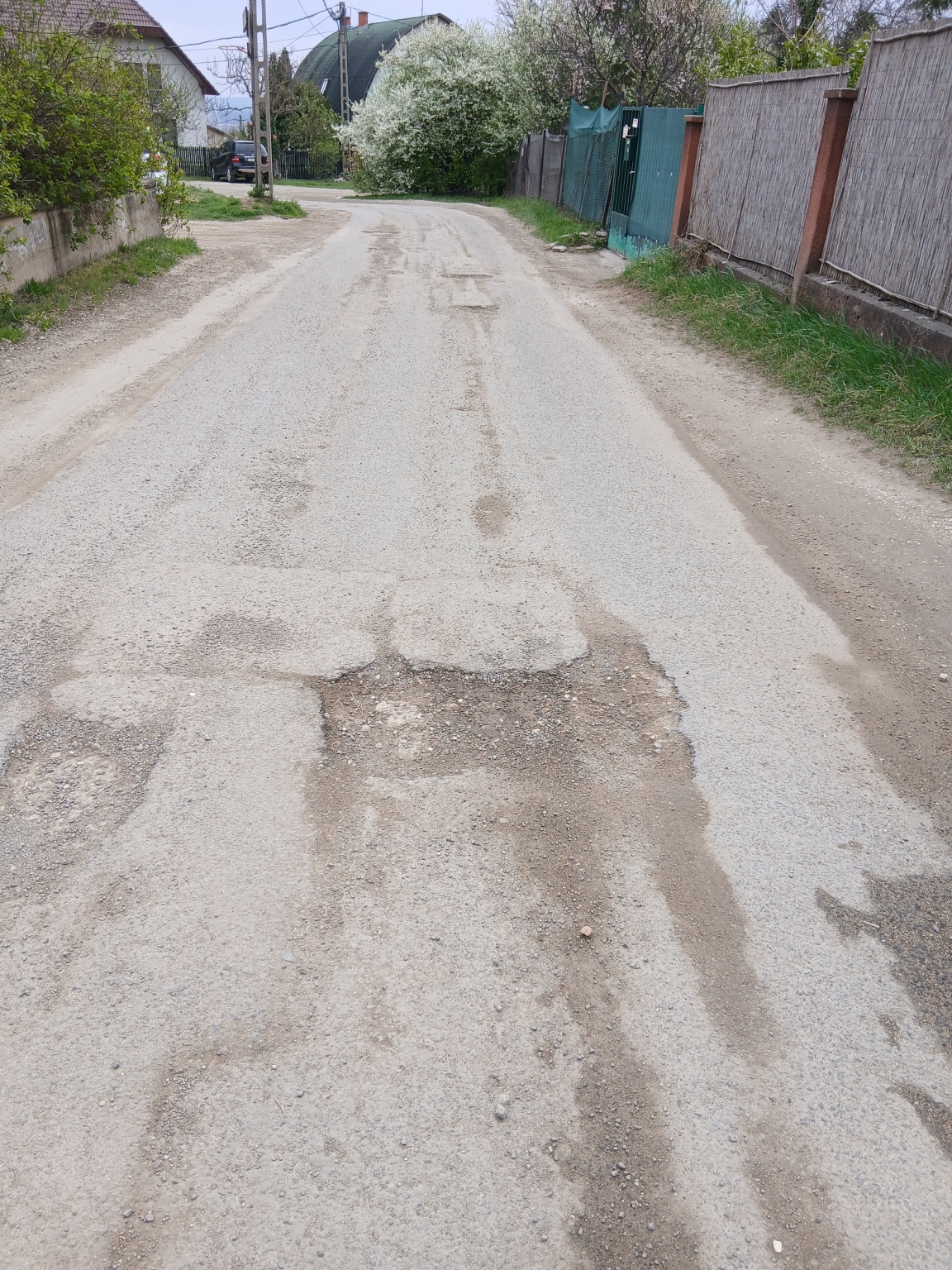 Bp. közvetlen szomszédságában Budakalászon a Berdón, kátyúkkal téli utakon próbálunk közlekedni. Ez a városrész már teljesen beépült, az utak állapota viszont katasztrofális. Évente többször kátyúznak, ami csak ideig óráig jelent megoldást. A mart aszfalt és a cementes stabilizáció száraz időben poros, csapadékos időben sáros.
