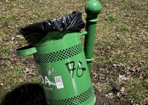 a Budakalászi Lenfonó Hévmegállónál a megálló Budakalász megálló felé eső részénél 1 éve hiányzik a szemetes.