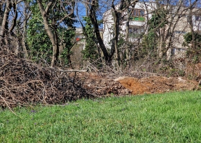 Építési, háztartási hulladékok nagy mennyiségben az út mellet illetve enyhén szétterülve a domboldalon. Csak a bokrok fogják fel a felgyülemlett szemezett. Ezen a területen több hasonló, de kisebb kupac található.