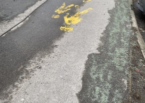 A Clementis László utcában a képen látható oszlopon van egy régi reklám? tábla.