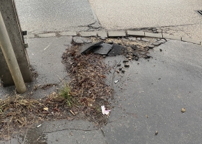 Kérem lehetőségük szerint javítani, színtbehelyezni a járdát.