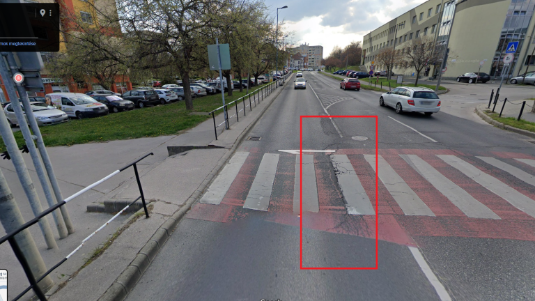 A Szabadság út 158-nál van egy gyalogosátkelőhely, amelynek betöredezett felülete elkezdett rohamosan romlani.