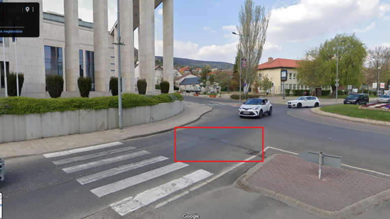 A Szabadság út 119-nél, a körforgalom kijáratánál teljes terjedelmében szétrepedt a sáv.