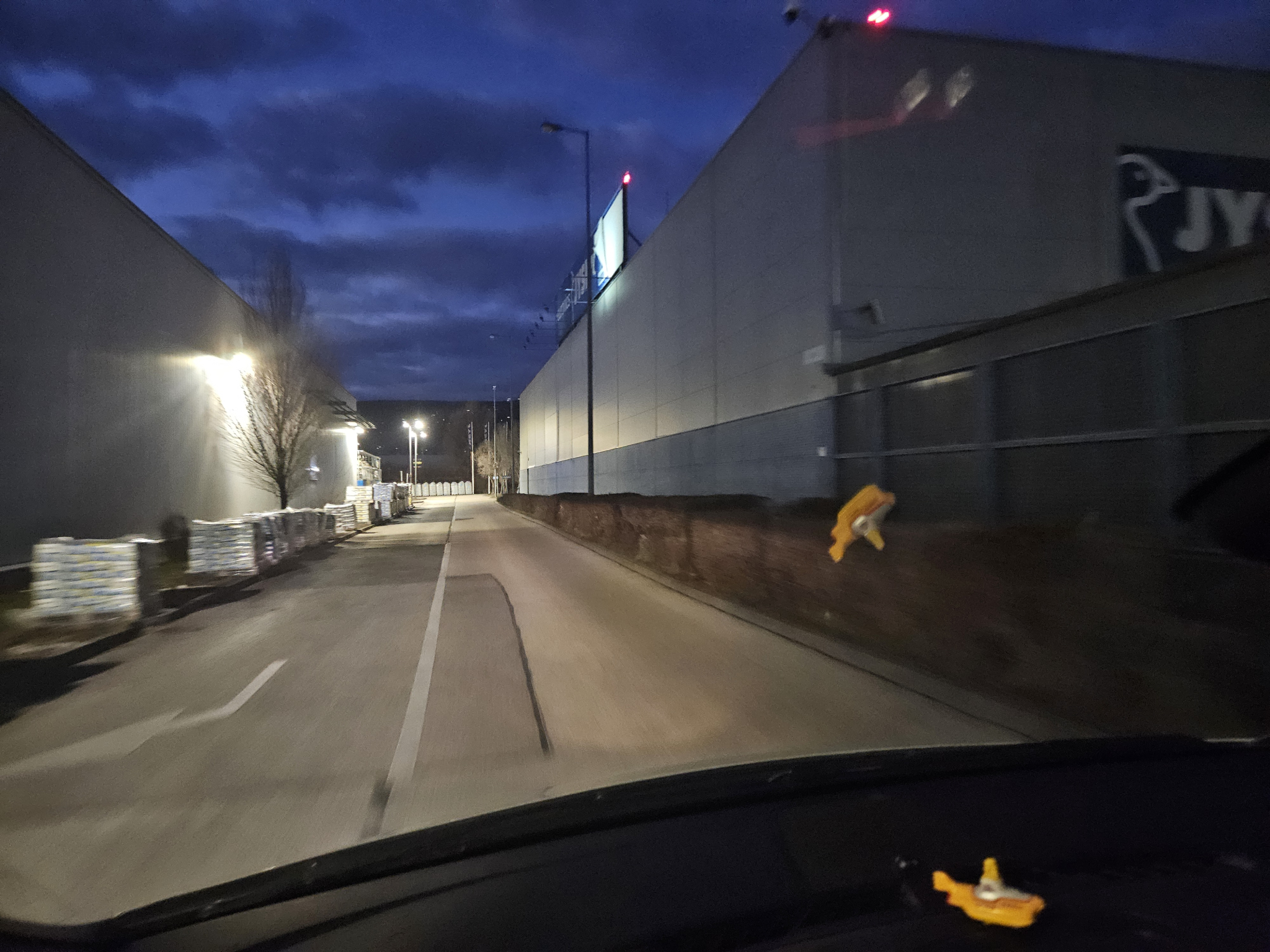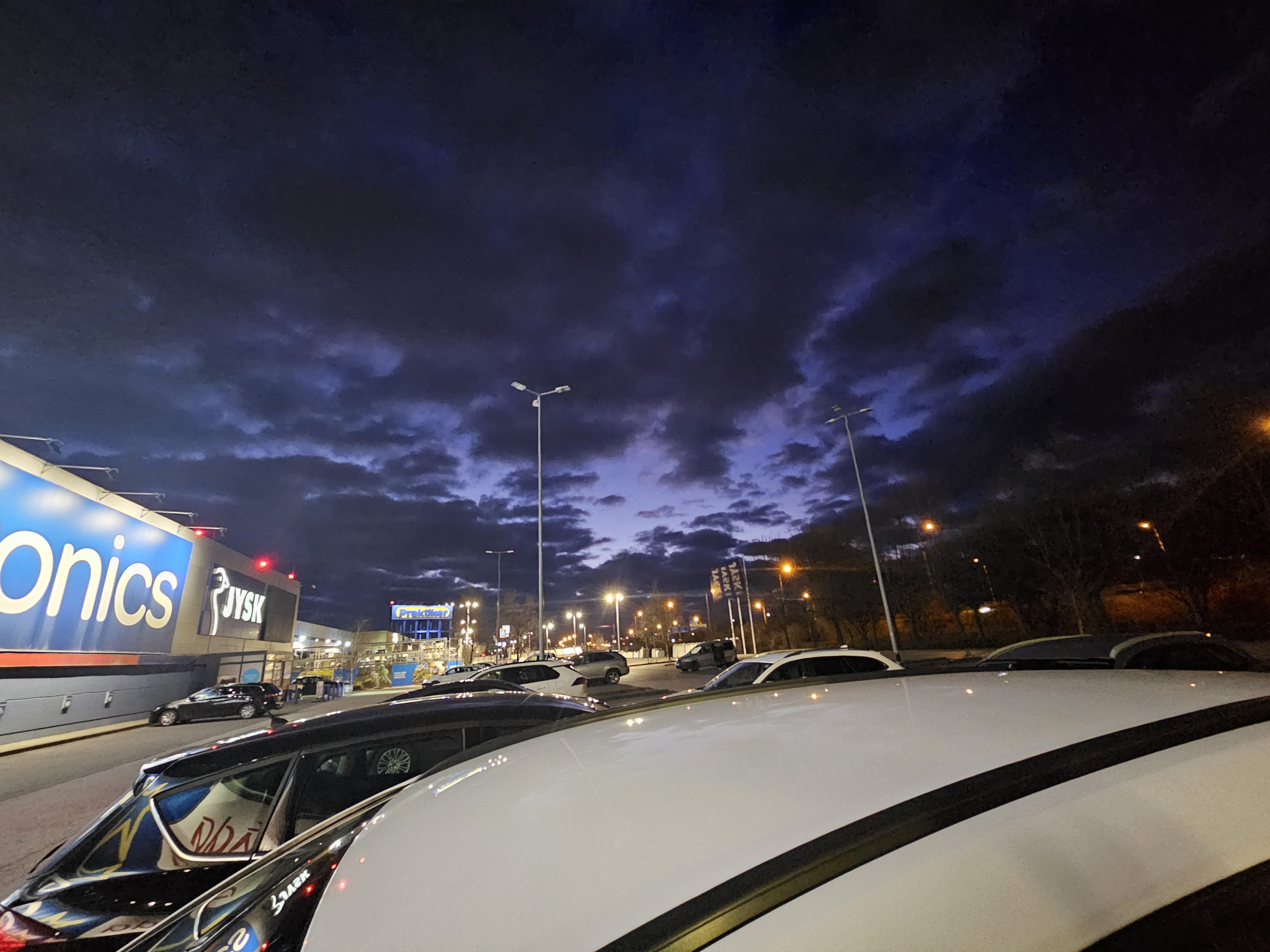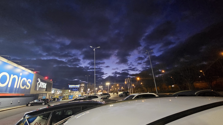 A környék útjain nem működik a közvilágítás, csak némelyik parkolóban világítanak a lámpatestek, és néhol az áruházak megvilágítás ad fényt a sötét közvilágítási oszlopok helyett.
