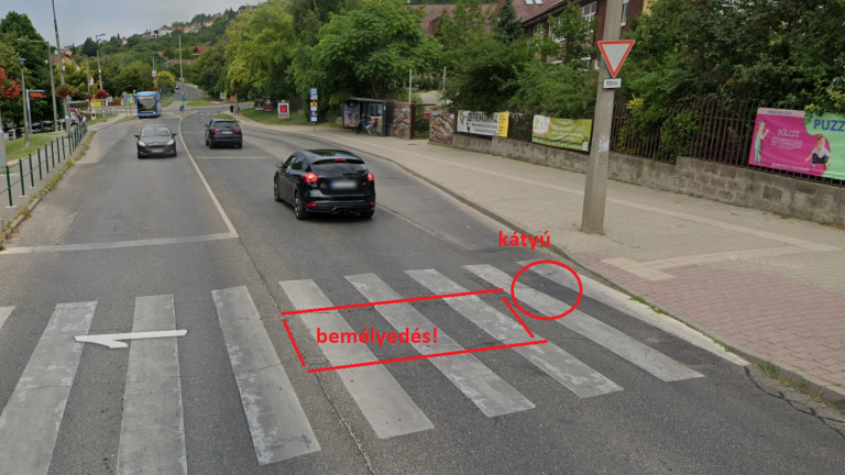 Budaörsön, az Illyés Gimnáziumnál a gyalogosátkelőhelyen keletkezett egy kátyú, ráadásul az úttestben is van egy rejtett bemélyedés.