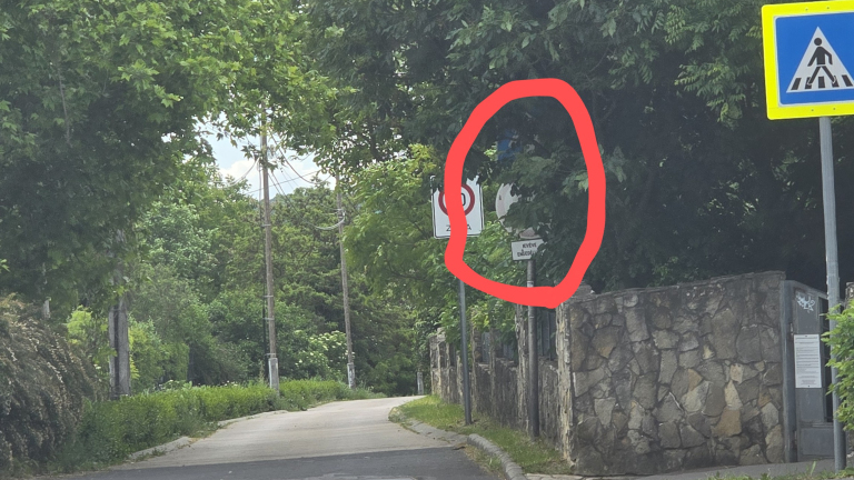 A növényzet által kitakart jelzőtáblák csak nehezen észrevehetők.