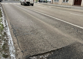 Folyamatosan kiújuló kátyú a Tesconál