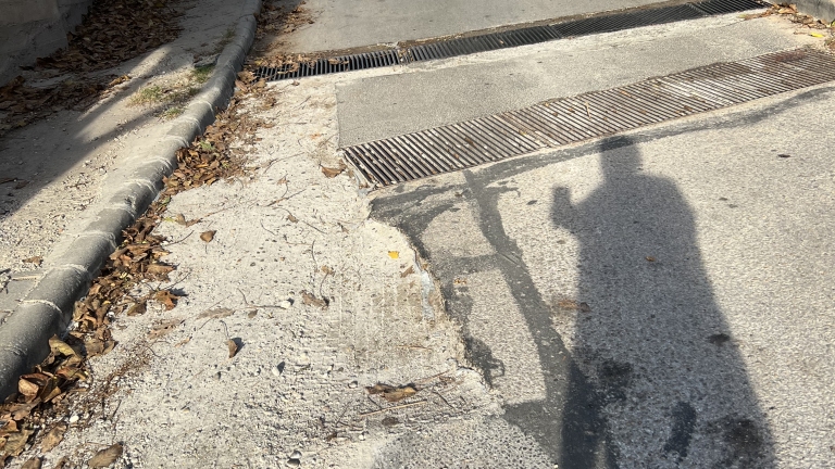 Budaörsön a Liliom és az Alma utca sarkán lefolyórácsot javítottak, de az aszfaltozás elmaradt. Ez egy lejtős rész, gödör maradt, illetve az eső kimossa a kavicsokat. Emiatt csúszós, balesetveszélyes az útszakasz.