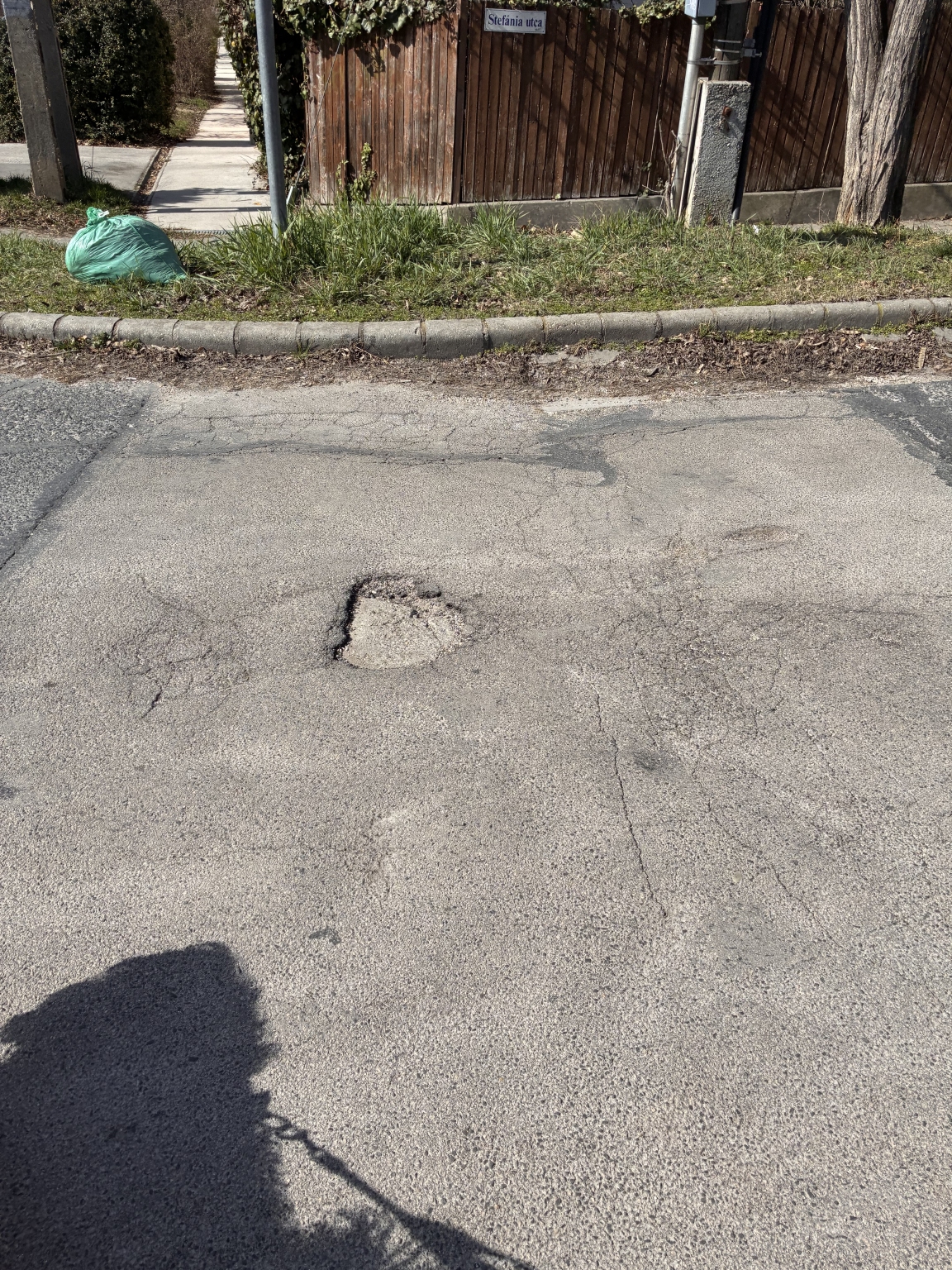 Aszfalt karosodas Budaorson, a Stefania utcaban.