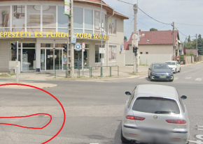 A Raktárvárosi és Temető utca kereszteződésében tátong ez a jókora kátyú