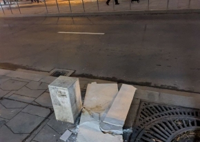 A járdán az esővíz elvezető rács beszakadt és részben hiányzik mely így felettébb balesetveszélyes.