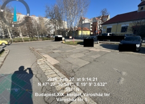 Van egy megrongálódott lámpaoszlop a Kálvin téren.
