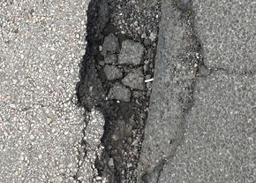 Pár hete kezdődött töredezés az úttest szélén. Napról napra rosszabb állapotban van. Tartok tőle, hogy esetleg nagyobb üreg keletkezett alatta (volt már ilyen az utcánkban pár sarokkal odébb), s egyszer beszakad.