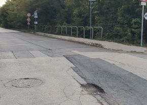 Az Ady Endre utcában általában a parkoló autók takarják az úttest és a fekvőrendőr megsüllyedését. A probléma viszonylag régóta fennáll, szóval talán nem veszélyes, de érdemes felvenni a javítanivalók listájára.