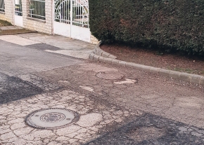 Az utcában múlt héten építették újjá a járdákat egy kábelfektetés után, de ezt az egy kátyút nem sikerült befoltozni.