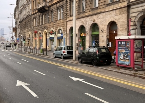 A Bajza utcán végig még mindig kint vannak a DK választási plakátjai minden oszlopon.