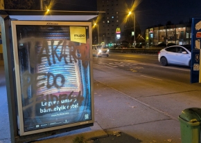 Összekarcolt BKK buszmegálló Váci út 72