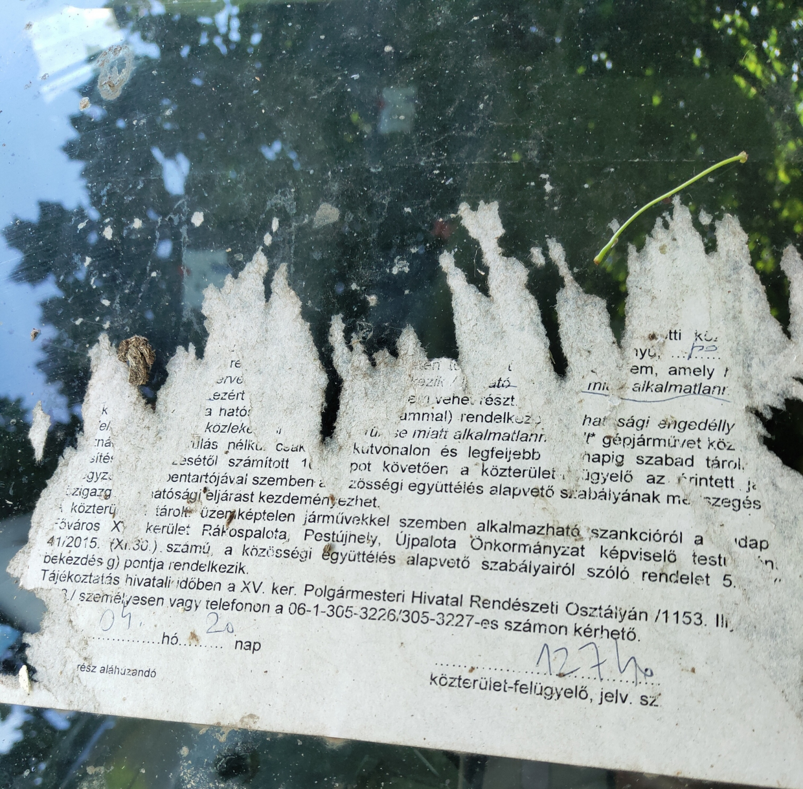A XV. kerületi rendészet már tett rá egy cédulát, amit megpróbáltak eltávolítani, sikertelenül.