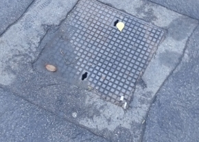 Egy rongálódott aknafedél