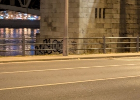 Graffiti az Andor utca / Tétényi út buszmegálló üvegfalán a Tétényi út 98a előtt.