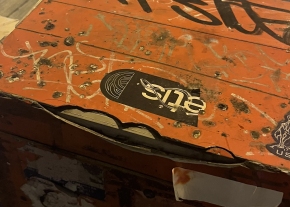 Az Egyetem sarkánál található Korrózióvédelmi eszköz teljes felülete graffitis.