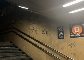 A 1117 Bp., Bercsényi utca 24. előtt össze van firkálva két pad.