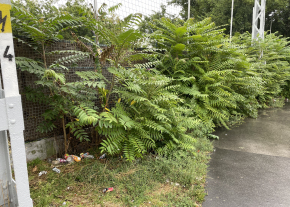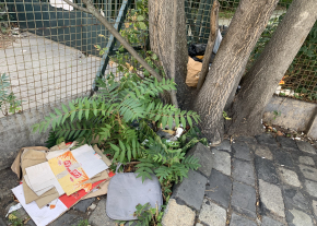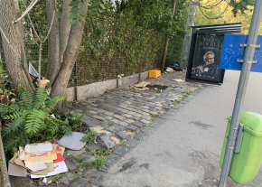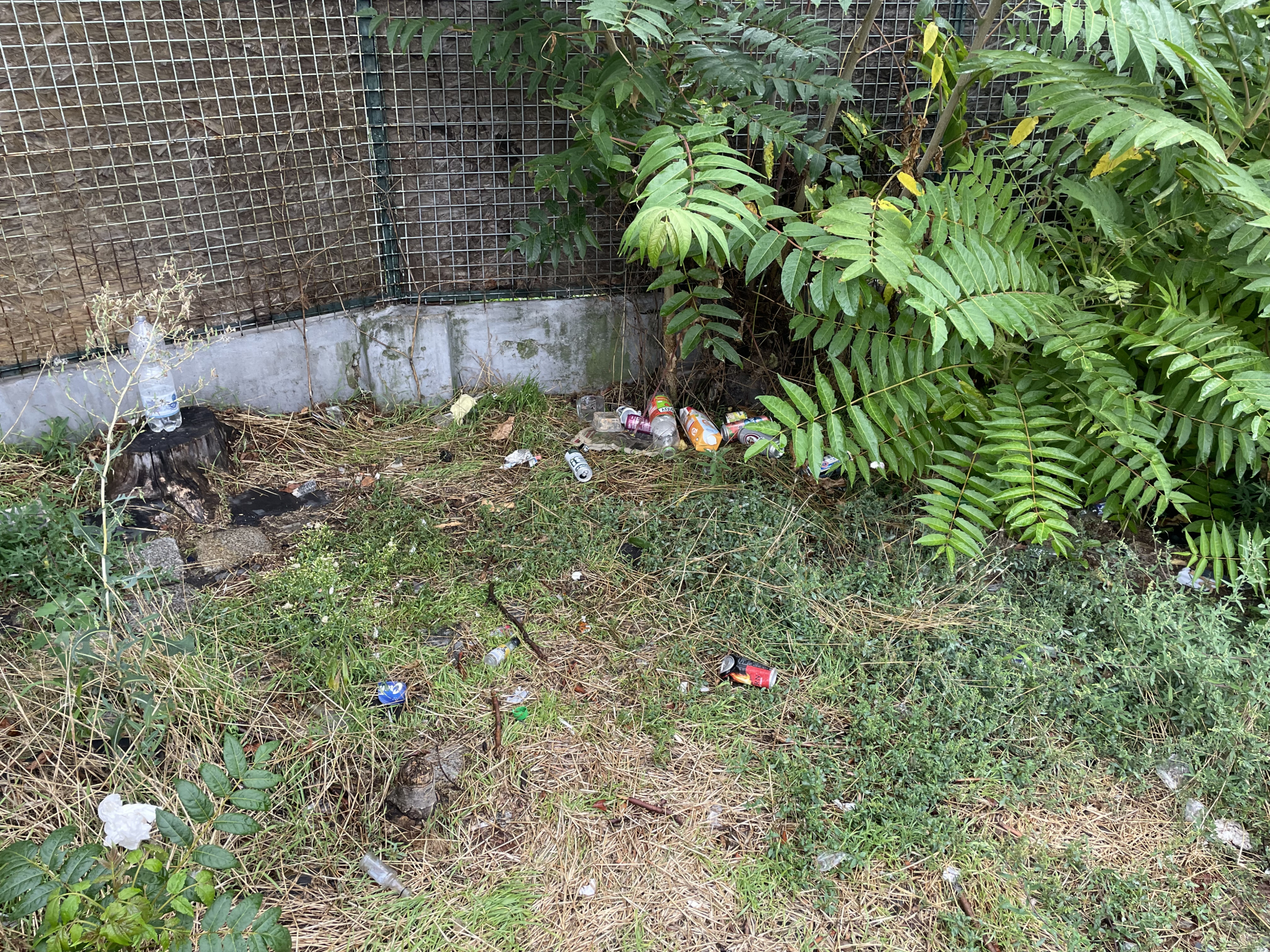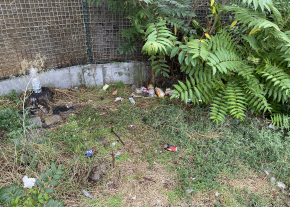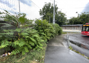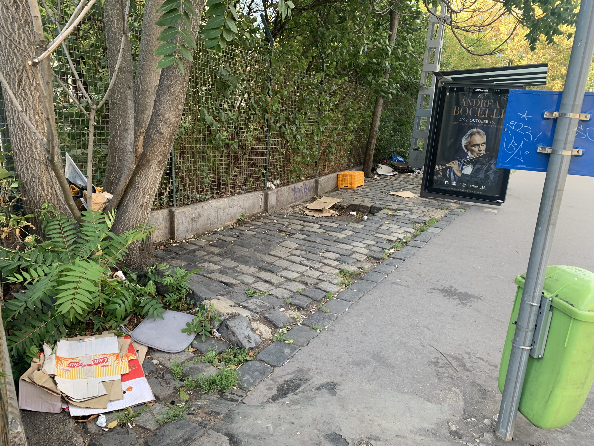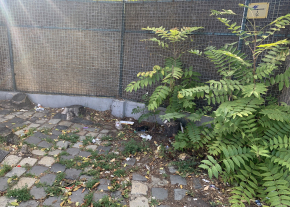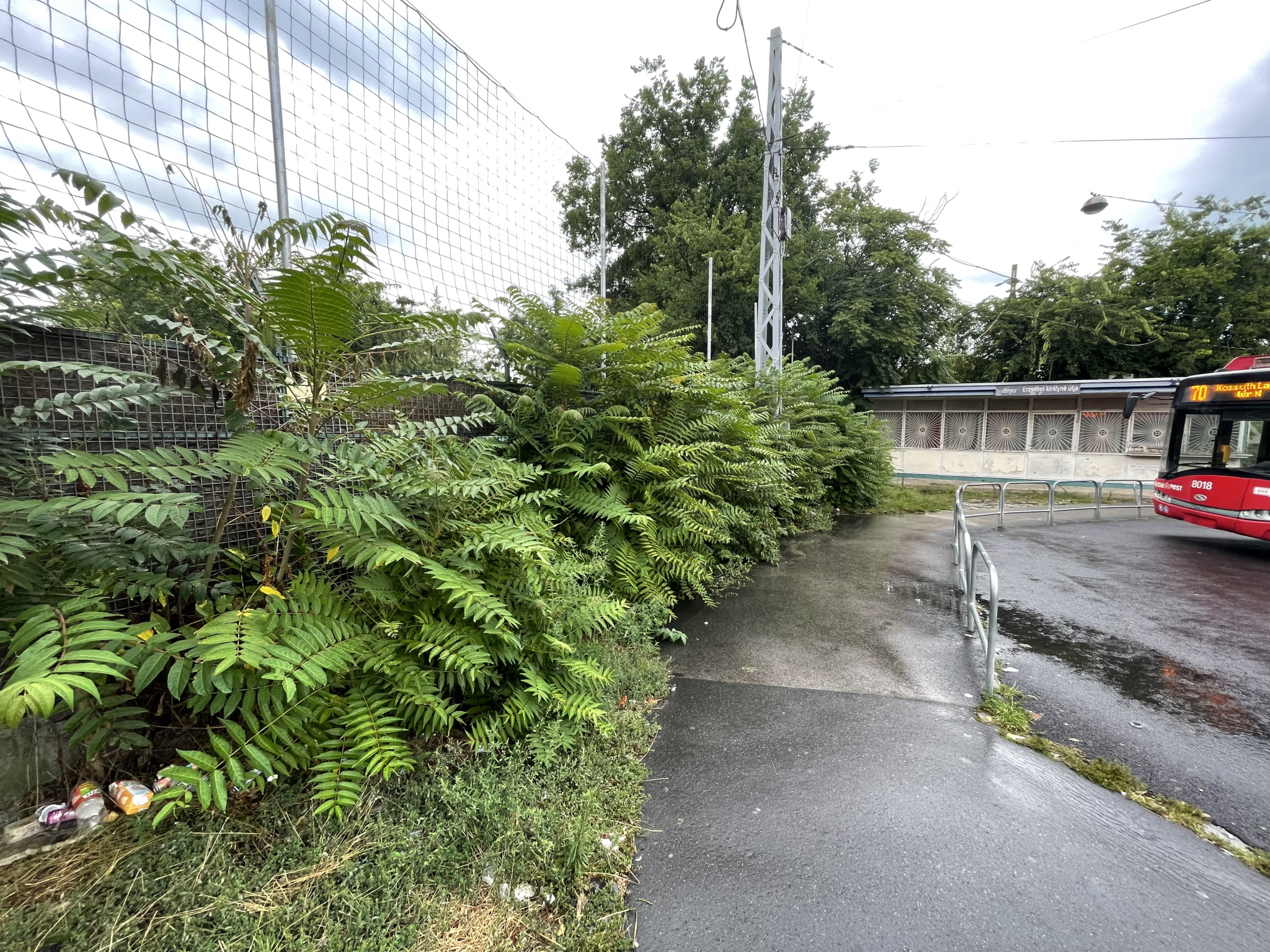 A trolivégállomás felé vizelet bűz. Hulladék mindenfele, a kerítések mentén meg ecet vagy bálványfa végig. Úgy tudjuk, invazív fa.