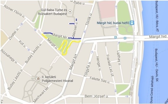 A fenti probléma megoldásához javaslom lakó-pihenő övezet kialakítását, (Margit tér északi oldalán lévő - Margit utca páratlan oldala, valamint a Mecset utca - Gül baba türbéjéig lévő területen) egyben főútvonalnak a Margit teret déli oldalon megkerülő út kijelölésével, illetve igénybevételével, a Margit körút forgalmának Szemlőhegy irányába történő elvezetéséhez.