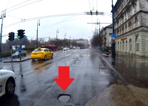Kátyú a Váradi utca 17. szám előtti parkoló bejáratánál.