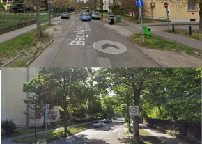 Hiányzó útburkolati jelek a lepusztult Pillangó utácában