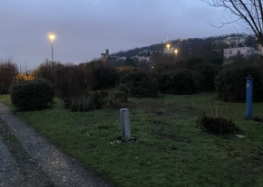 a Rossmann előtt hiányzik az oszlopról az ajtó