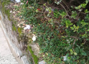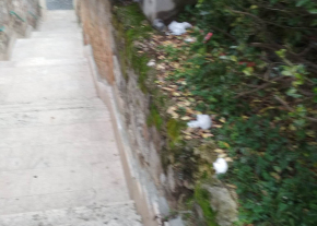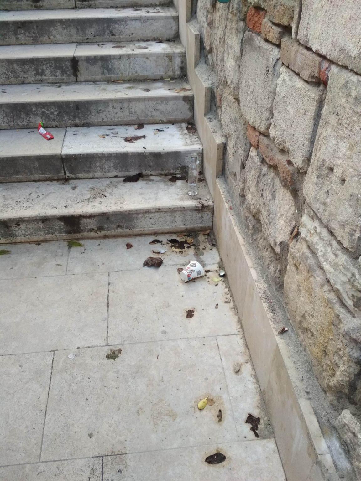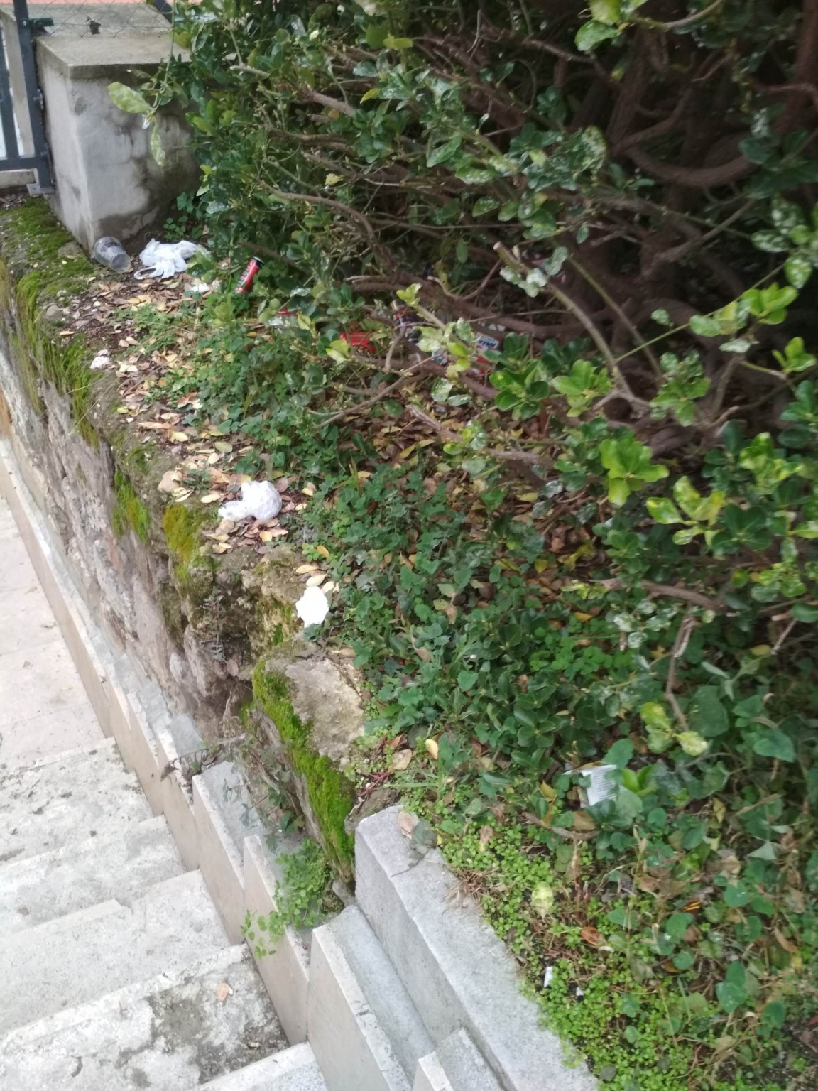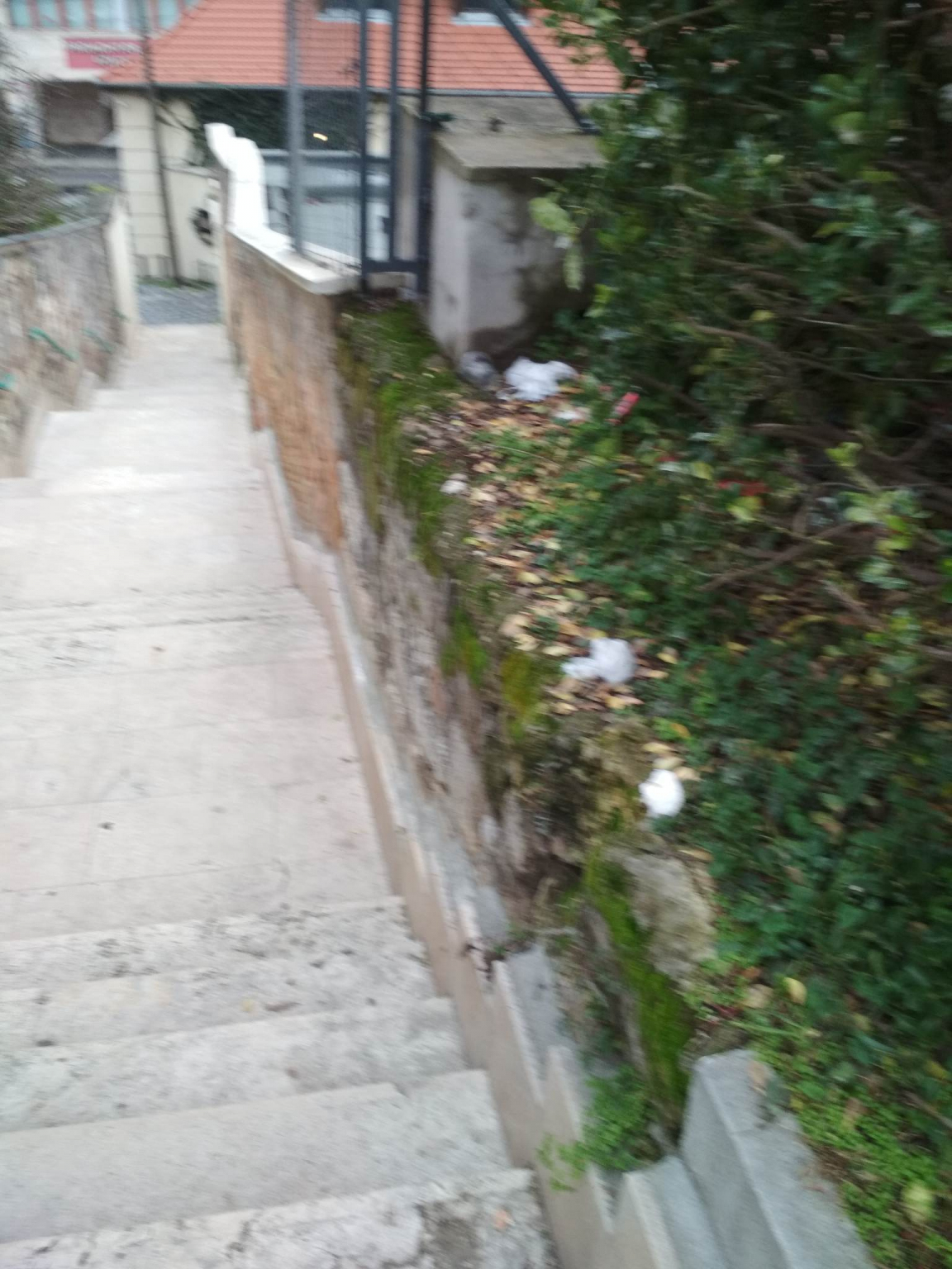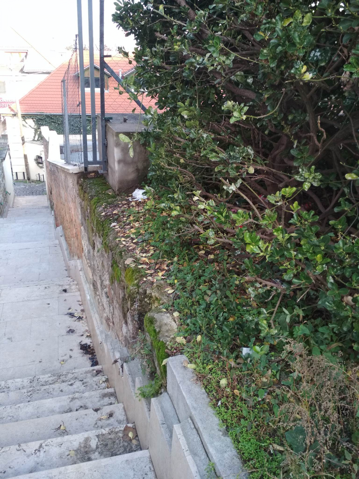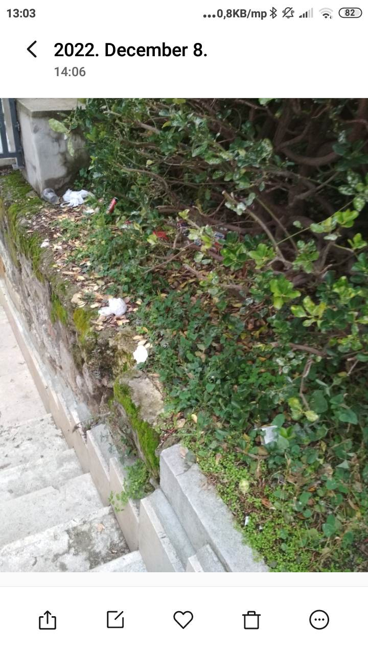 Sajnos ritkán volt takarított a Seidl lépcső 2022-ben és a zöld terület mellette fenn./Hosszúhegy utca/
