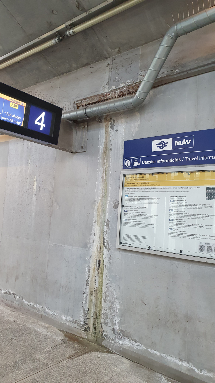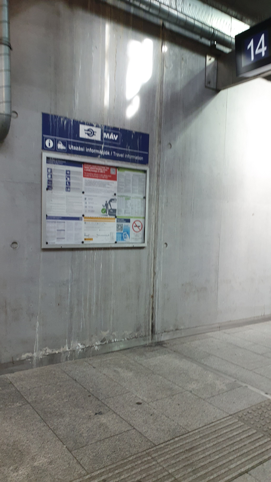 A 00114565 számú bejelentésben szereplő Budapest XI. kerület Kelenföldi pályaudvar állomás gyalogos aluljáró ázó oldalfalával kapcsolatosan az alábbi tájékoztatást adjuk: