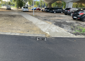 A Sibrik Miklós úti felüljáró alatti járda az egyik végén már kisebb eső esetén is víz alá kerül, járhatatlan lesz.