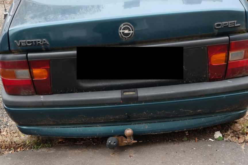 Egy elhagyatott zöld Opel Vectra áll a Nyírpalota út 16-18 előtti parkolóterületen hónapok óta, siralmas állapotban (rozsda, leengedett kerekek, stb).