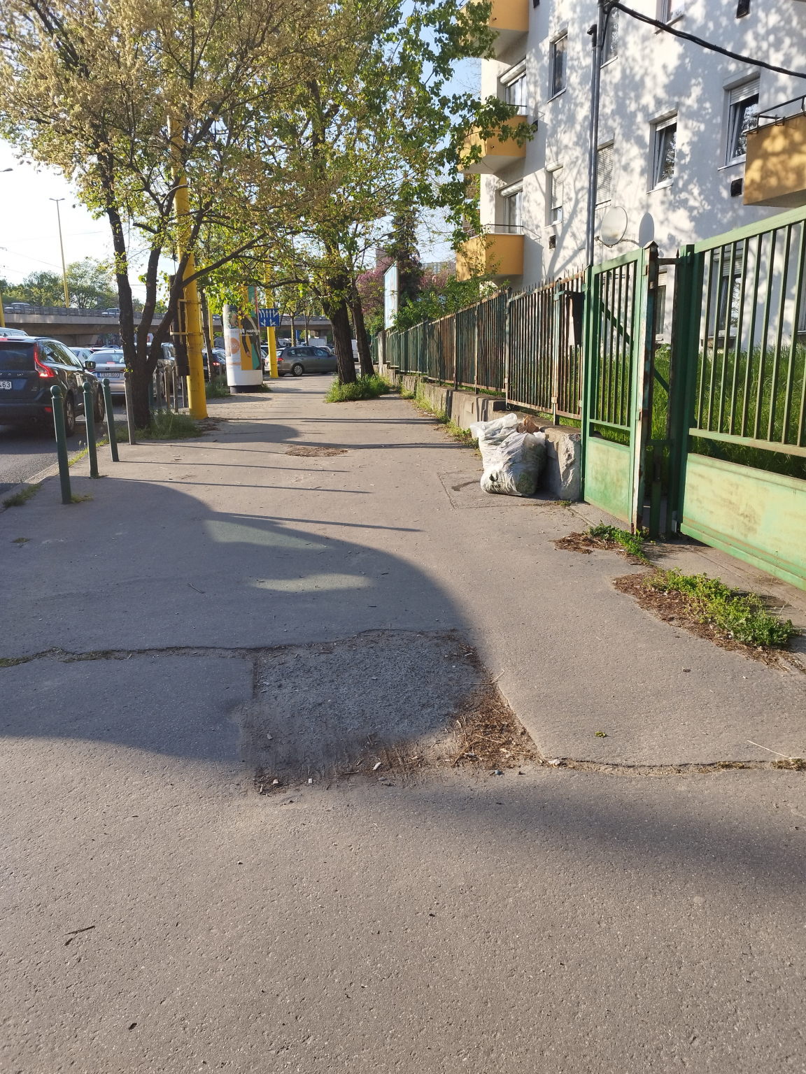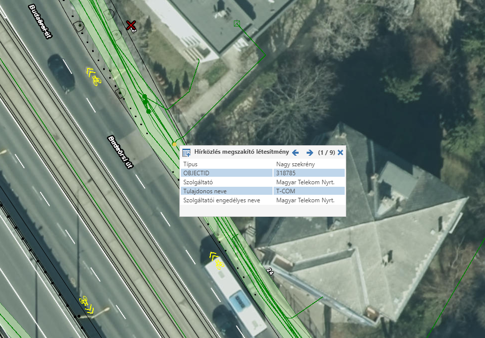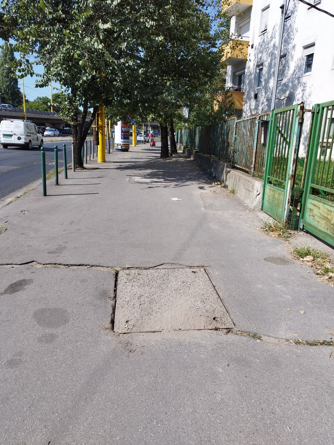 Budapest Közút válasza: "Ezen a járdaszakaszon nincsen hálózatunk, a közműtérkép szerint a MagyarTelekomnak van hálózata és aknája itt.(mellékelve a közműrajz)."