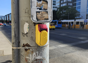 A Petőfi híd pesti hídfőjénél, az északi oldalon, a buszmegállónál, kissé hiányos a korlát.