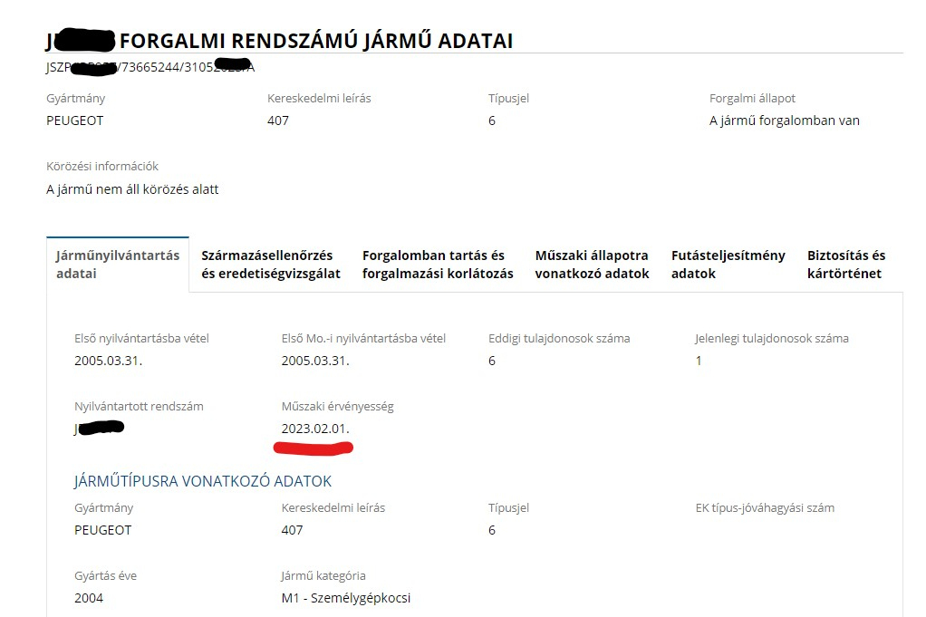 Jármű műszaki érvényessége lejárt: 2023.02.01
