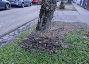 Egy-két hétig a járdára lógott, aztán járókelők behúzták a füves területre.