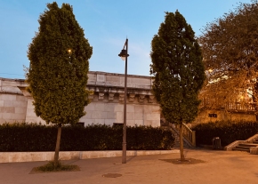 A XIX. kerület Kossuth téren, a Kosárfonó utcai társasház 2-8 száma előtt álló egymás melletti 5 db lámpája nem üzemel