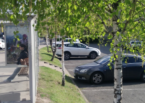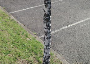 A Novotel hotel parkolója és a BAH csomópont buszmegállója között az egyik a fát védő oszlopok közül mélyen megsebesítette a fát, mert a fa a természetes mozgása közben (szél) hozzáér.