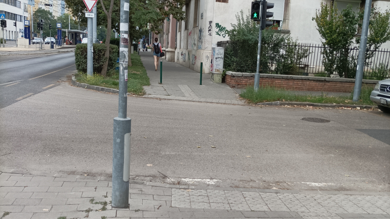 A gyalogátkelő felfestése már egyáltalán nem látszik.