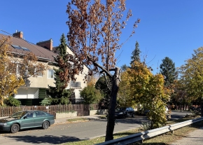 Az Ulászló utca 60. előtt a sarkon a fa eltakarja a KRESZ-táblát. Kérem, metsszék meg!