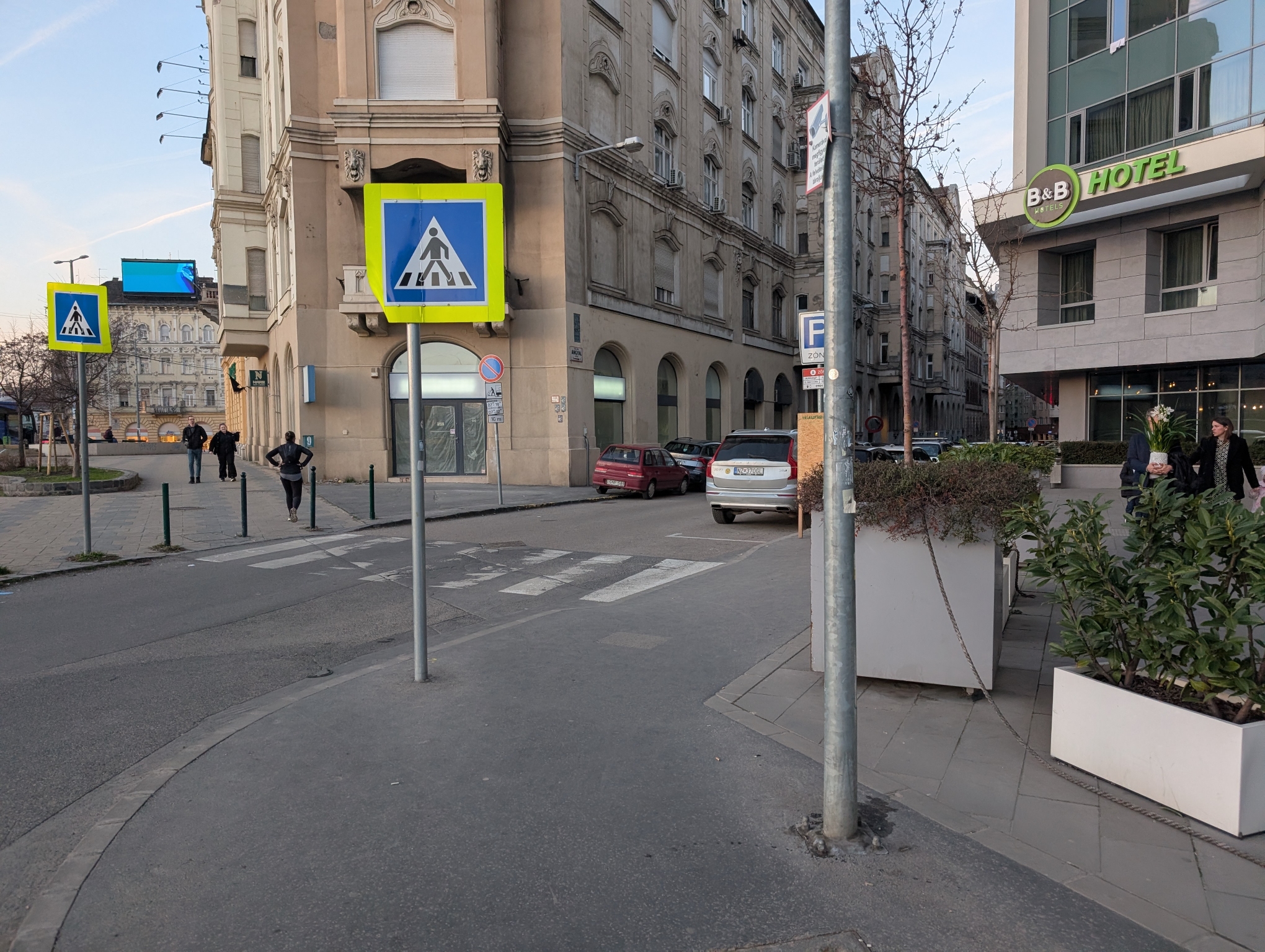 A Boráros térnél az Angyal utca végénél lévő zebra, hotel felőli oldalán nagyon szűk a hely. A hotel által kihelyezett elemek a sarkon nagyon leszűkítik a helyét, babakocsival, kerekesszékkel nehéz a közlekedés, főleg, hogy itt ezt 2 tábla oszlopa is nehezíti.