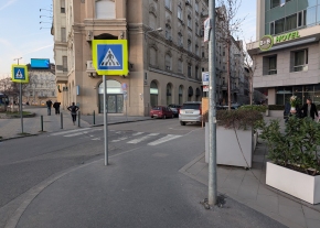 A járdát leszűkítő kijelölt gyalogos átkelőhely jelzőtáblatartó oszlopának áthelyezése megrendelt állapotban van, a megvalósulásig kérjük szíves türelmüket!