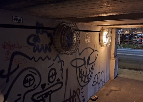A Deák Ferenc téren, a KFC előtt, igen forgalmas helyen hiányzik a közvilágítási lámpaoszlop szerelőnyílásának a burkolata. Mintha a félmegoldás csődarab le lenne csúszva a lámpaoszlopról - ami nem meglepő, lévén az nem az ehhez a lámpaoszloptípushoz való burkolat.