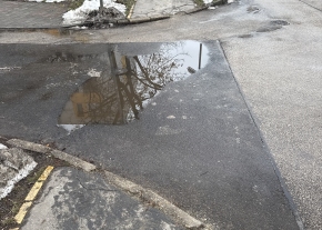 A járda (aszfalt) elég komolyan meg van süllyedve. A kép nem adja vissza, de a kérdéses lyuk minimum 20 cm mélységű.